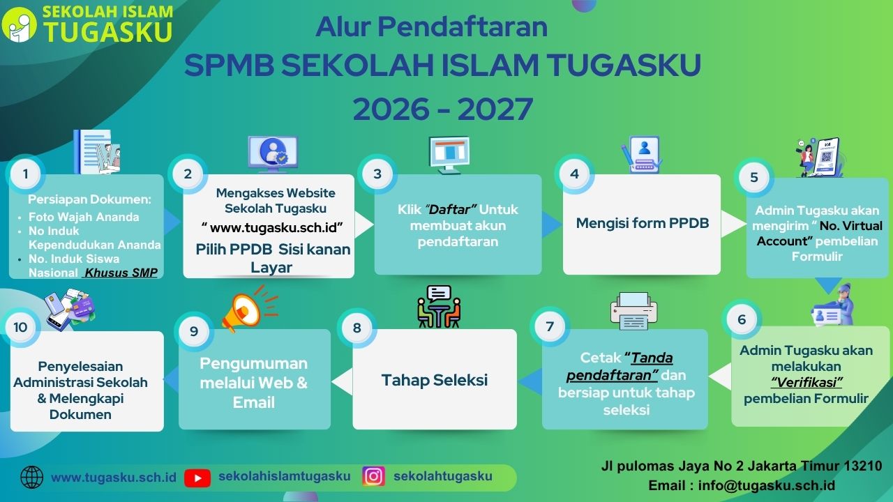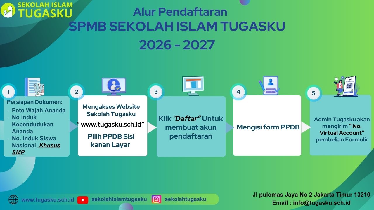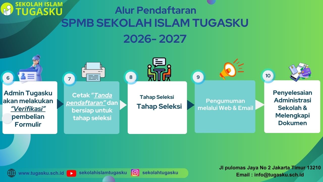Kami ingin anak-anak tumbuh dan belajar di Sekolah Islam Tugasku dengan bimbingan akhlak yang berpedoman kepada ajaran Al Quran dan hadits.